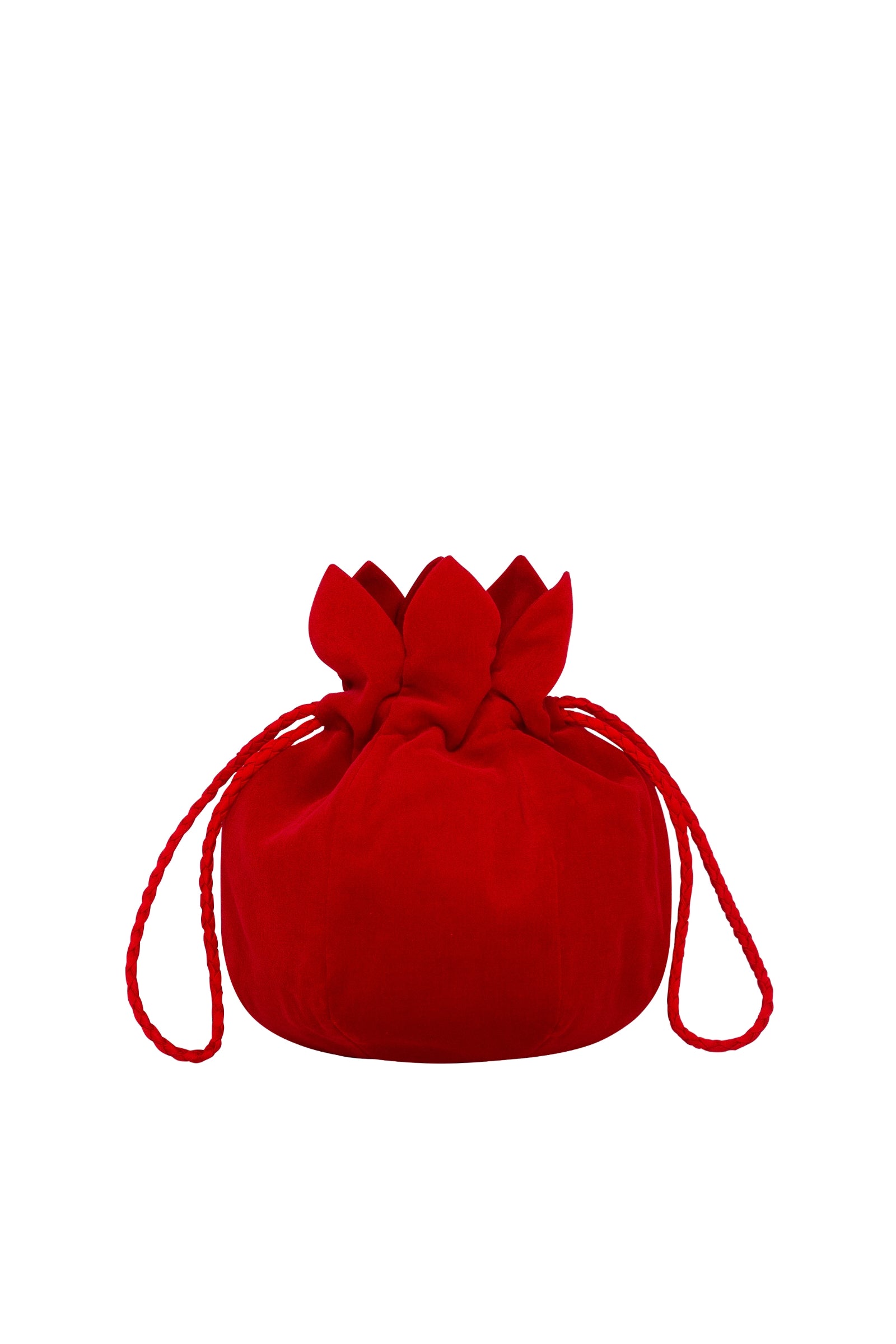 Soft velvet bag with lining, single compartment, and thin drawstring handles