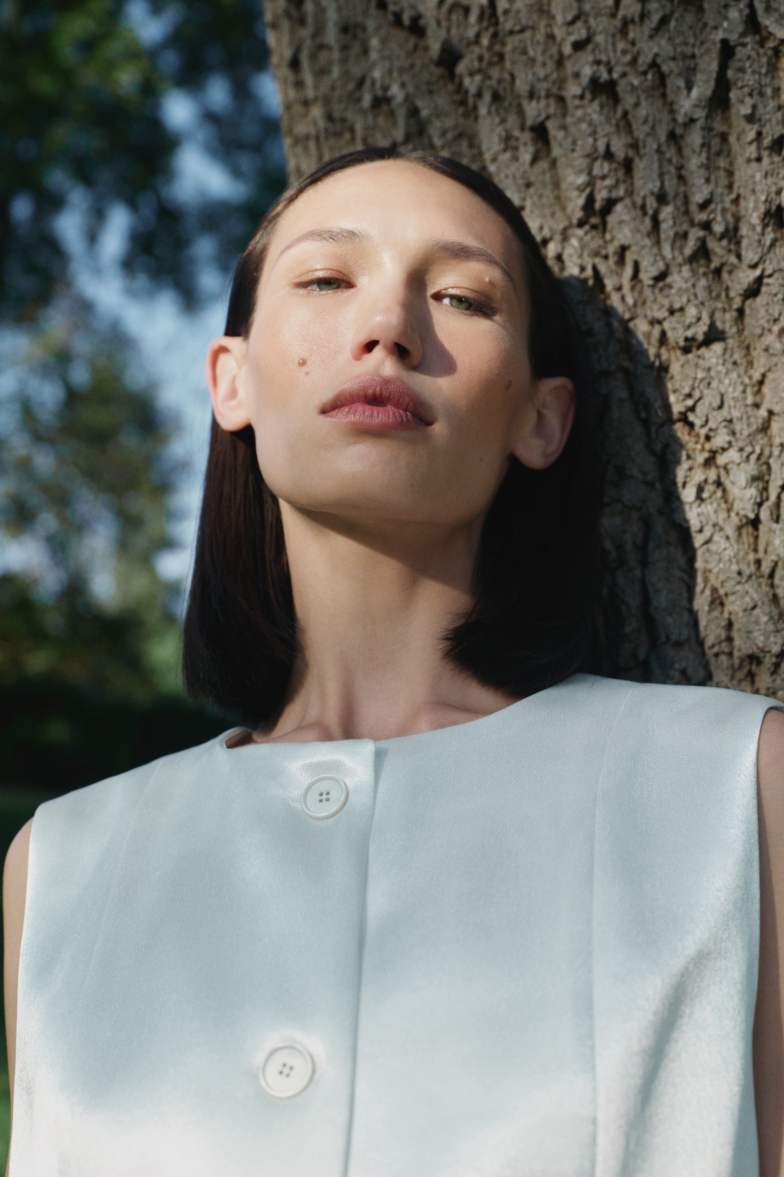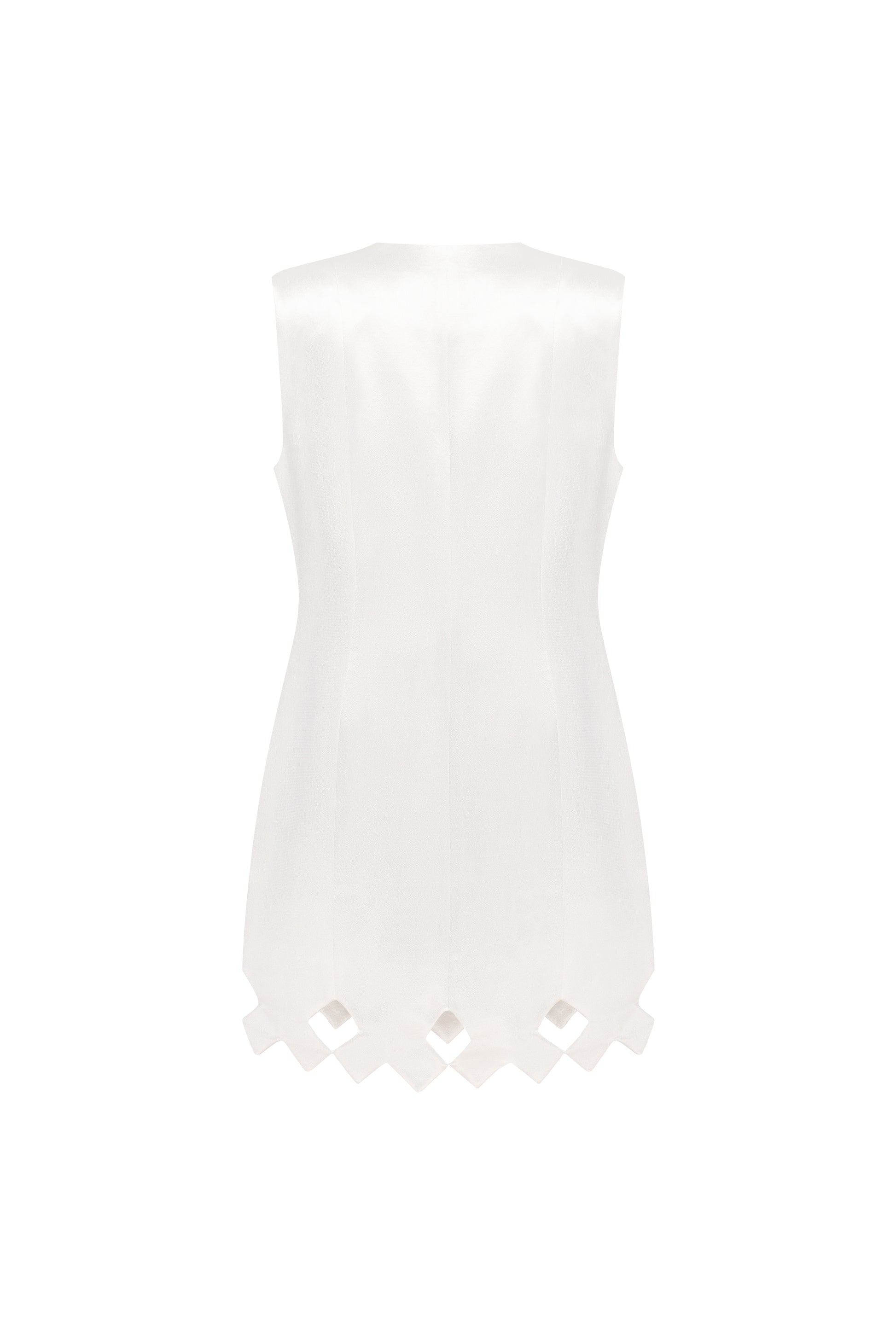 Mid-length semi-fitted vest in viscose with buttons and scalloped bottom